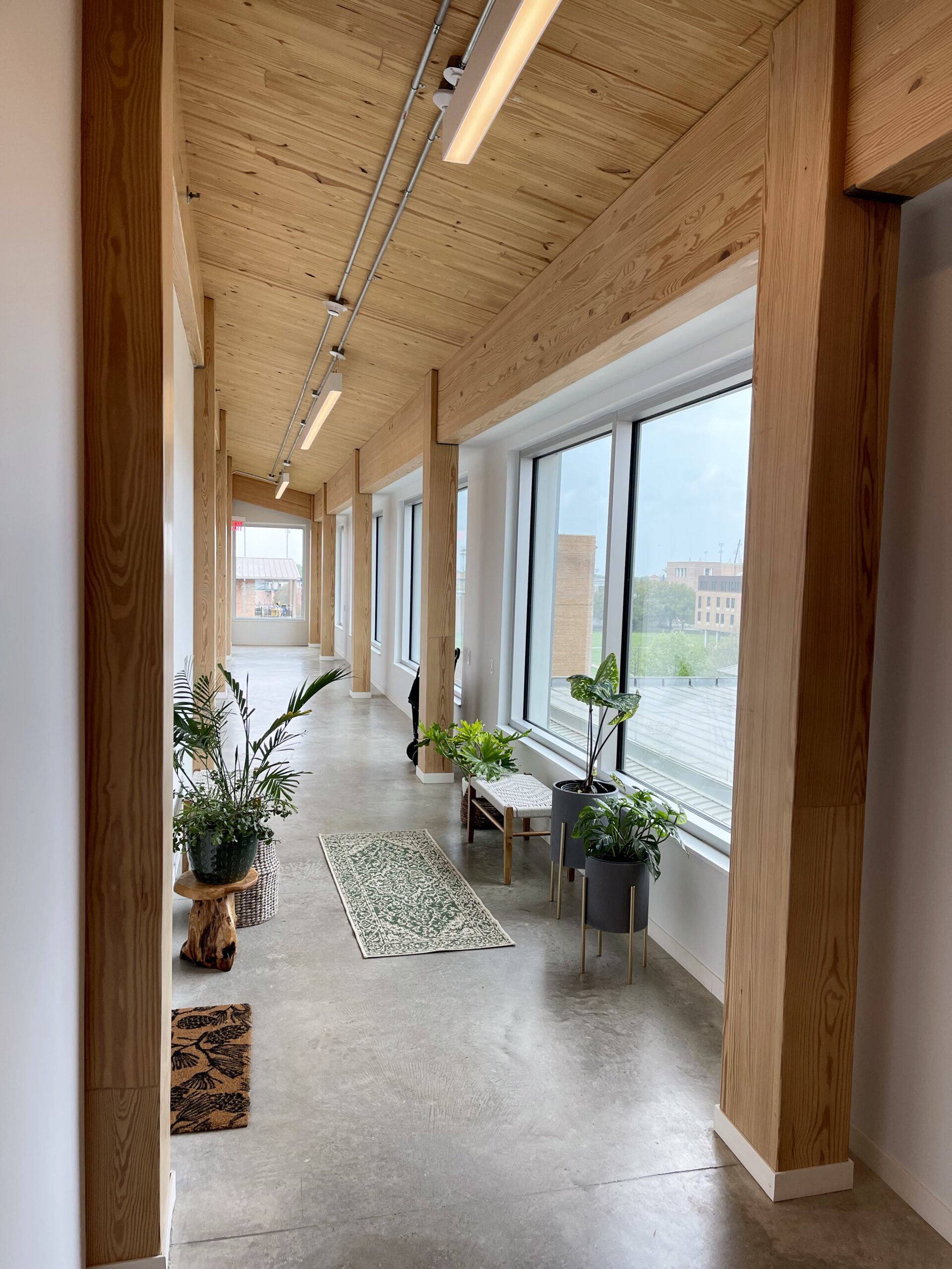 “One of the earliest challenges we had to work through with the CLT design was the limited availability of acoustical laboratory test data. There were specific minimum performance ratings the acoustical design needed to achieve and very little information to objectively evaluate the various CLT systems being considered. After an intensive period of research and analysis, we were able to develop the internal resources necessary to calculate the acoustical performance of the CLT and associated components. We conducted extensive research and analyzed the data to develop an approach we believed would solve the problem utilizing a 2″ thick acoustic underlayment. This allowed the team to finalize the design, knowing the selected system provided the best value for the client.”