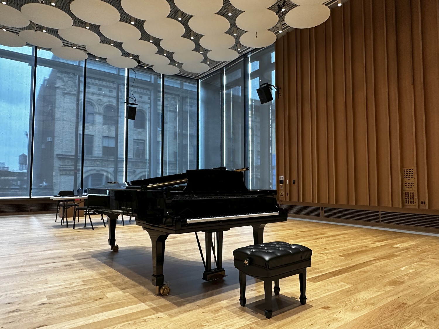 The Paulson Center will not only serve the undergraduate community at NYU; students at the graduate level working toward their Master’s and PhD’s will have access to the very best learning environments, with several spaces for NYU’s Tisch School of the Arts and the Steinhardt School of music housed within this monumental multi-use facility. Jaffe Holden’s scope for this $890M project included acoustic and audio/video design of the performing arts spaces, featuring the 350-seat Iris Cantor Proscenium Theatre, NYU’s first professional-level proscenium theatre; the African Grove Theatre, an end stage theatre named in honor of the first Black theatre in America; a flexible black box theatre; the Orchestra Ensemble Rehearsal Room which is the Music Department’s crown jewel, with full-height faceted glass walls overlooking the New York cityscape; and many other spacious and flexible dance, music, and theatre practice and rehearsal studios.